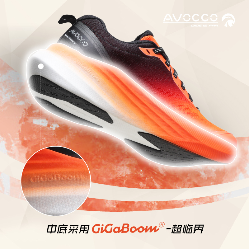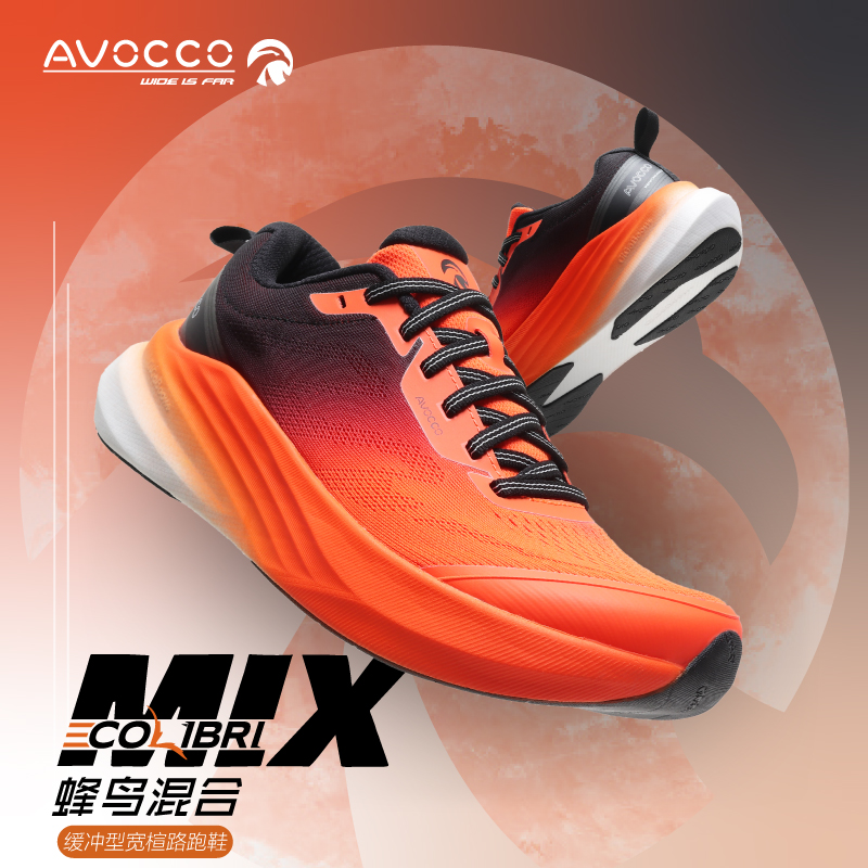 Avocco COLIBRI MIX(3E WIDTH)(6MM DROP) 顏色: 黑色、橘色 材質特色: 採用7毫米Jacquard編織+TPU熱封製程+3M反光印刷,具備防滲透/防水特性。 GiGaBoom®超臨界氮泡沫中底,CPU前掌外底抗滑,後掌外底超耐磨。適用尺寸範圍:35#-46# 適用場景: 專業路跑、訓練40公里、極長慢跑(LSD)、馬拉松和高級跑者 產品特點: Avocco獨有的"寬鞋頭"設計,提供寬鬆的鞋頭空間,確保沒有磨腳的困擾,帶來零磨合和流暢的跑步體驗。 GiGaBoom® 超臨界氮泡棉中底具備強大的回彈性能,呵護膝蓋。 鞋墊採用Kambaso® 冷感材質,頂部使用Coolmax®並添加Sanitized®抗菌成分,具有強大的抗菌、除臭、吸濕和排汗功能。 鞋面預先進行抗滲透處理,實現神奇的防水透氣效果,水滴滾落如同荷葉上一樣。 尺寸42#的單鞋重量僅239克,輕盈舒適。 鞋跟和鞋舌採用3M反光銀色設計,增強夜間運動的安全性。 外底前腳掌採用Gigagrip®超級抗滑橡膠,後跟採用超耐磨CPU,可輕鬆跑行2,000公里,既耐磨又防滑。 CO IBRI MIX將幫助您在路跑中挑戰自我,享受卓越的跑步體驗。